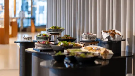 Nauti aamukahvista, lounaasta, työpäivän jälkeisistä juomista, illallisesta ja yöpymisestä Finlandia-talossa.
