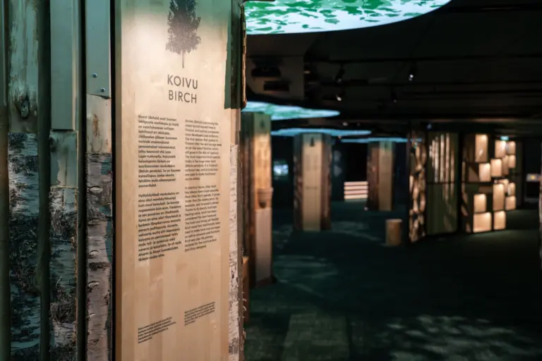 Metsien maa: Laskeudu valosta metsän maailmaan, jossa suomalainen luonto ja puu elementtinä heräävät eloon. Aaltojen luovuus ammensi metsistä, ja tässä tilassa näet kuinka puu saa muotonsa arkkitehtuurissa ja designissa.