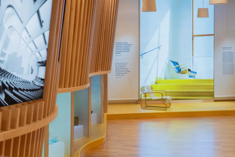 Pysyvä näyttely Alvar, Aino ja Elissa Aallon elämäntyöstä ja luovuudesta. Elämyksellinen matka suomalaisuuden ja Aaltojen suunnitteluperiaatteiden maailmaan.