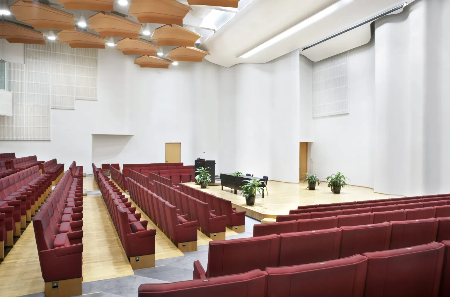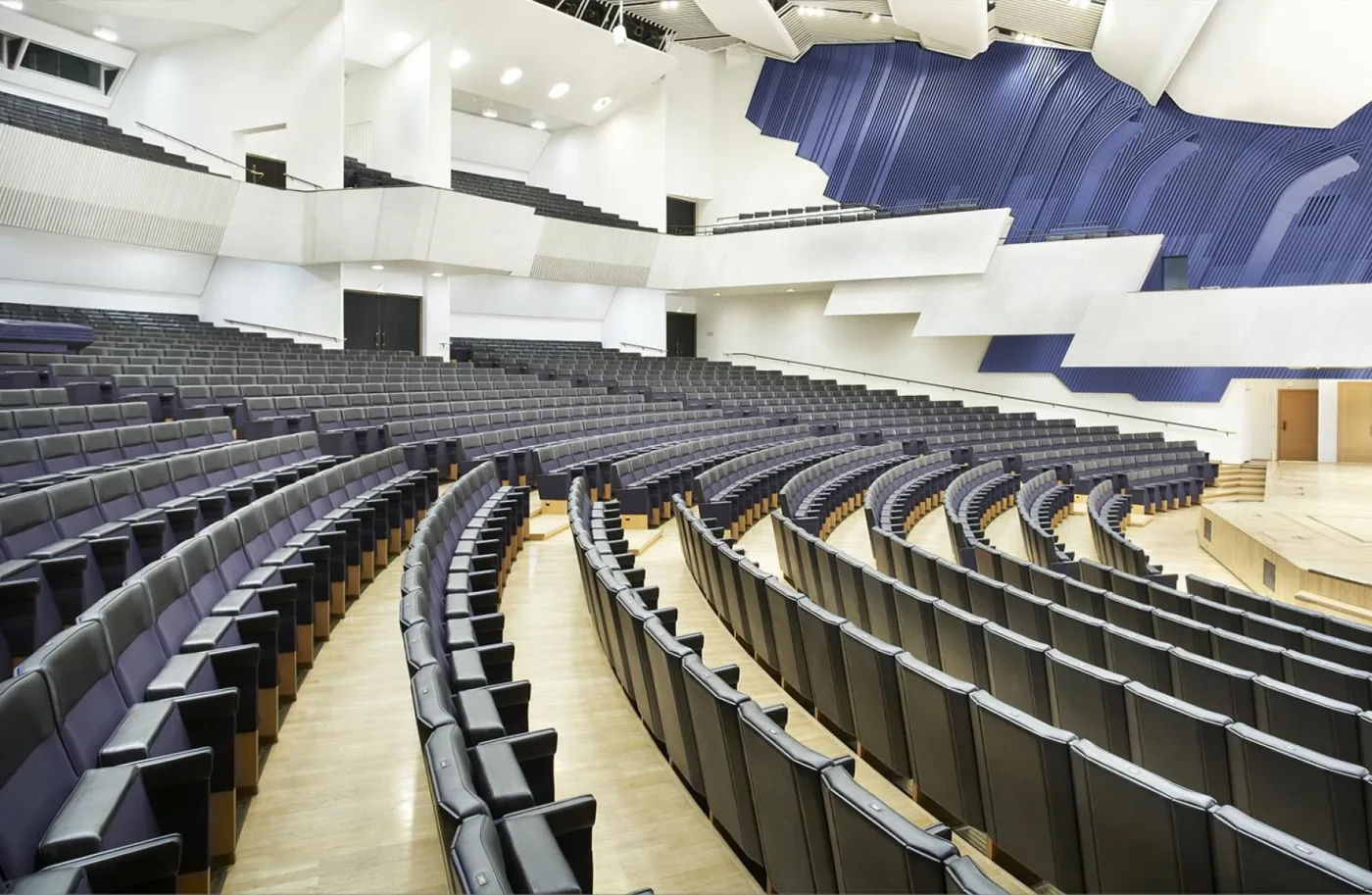 Enligt Aaltos grundsyn ska arkitektur vara en bakgrund för människan. Innehållet i evenemangen ger rummen en färgprakt. Därför riktas inte uppmärksamheten i Finlandiahuset mot fantastiska former eller skrikande inredning, utan mot publiken och artisterna. Tack vare detta är det lätt att anpassa lokalerna för olika evenemang enligt kundernas önskemål.