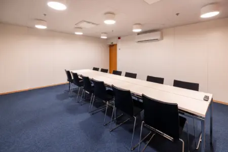 Mötesrum Essen är en del av vårt konferenscenter och våra nya mötesrum. Det lugna läget i byggnadens norra ände möjliggör smidig åtkomst till Piazzan eller konserthallen. Grupparbetsutrymmena Essen, Baker och Aalborg ligger intill varandra. Utrymmet är inte lämpligt för personer med nedsatt rörlighet.