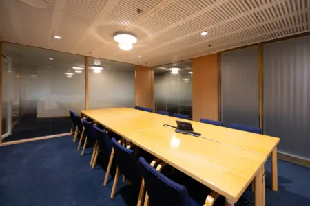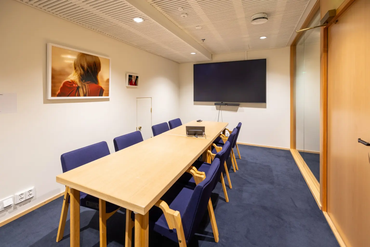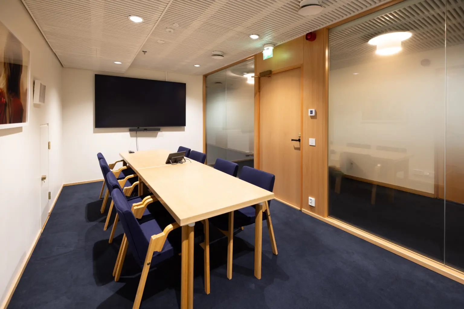 Mötesrum MUURAME är en del av vårt konferenscenter och våra nya mötesrum. Det akvarieliknande rummet fungerar som en utmärkt bakgrundslokal vid behov. Det centrala läget möjliggör enkel åtkomst till Piazzan eller Finlandia-salen. Rummet mellan mötesrummen SÄYNÄTSALO och PAIMIO möjliggör samtidig arbete för flera team.