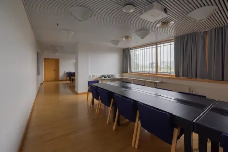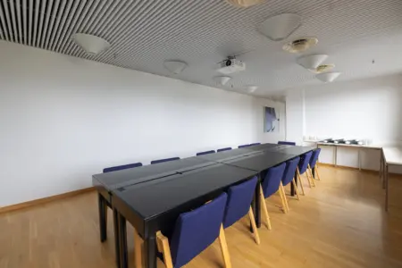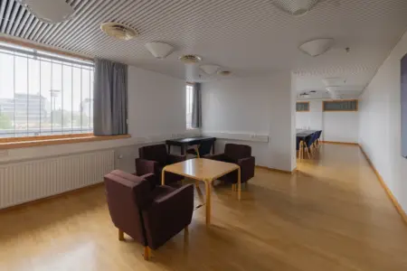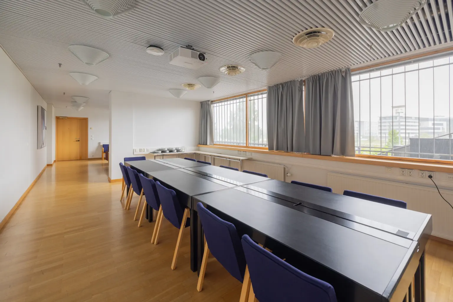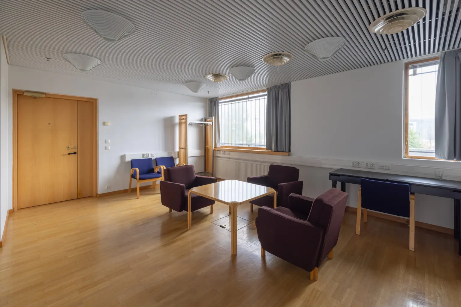 Trivsamma och funktionella omgivningar för små möten och grupper. En egen liten lounge med fåtöljgrupper ger rummet en trevlig extra touch.