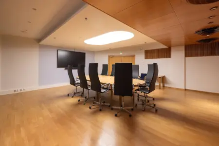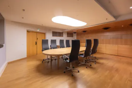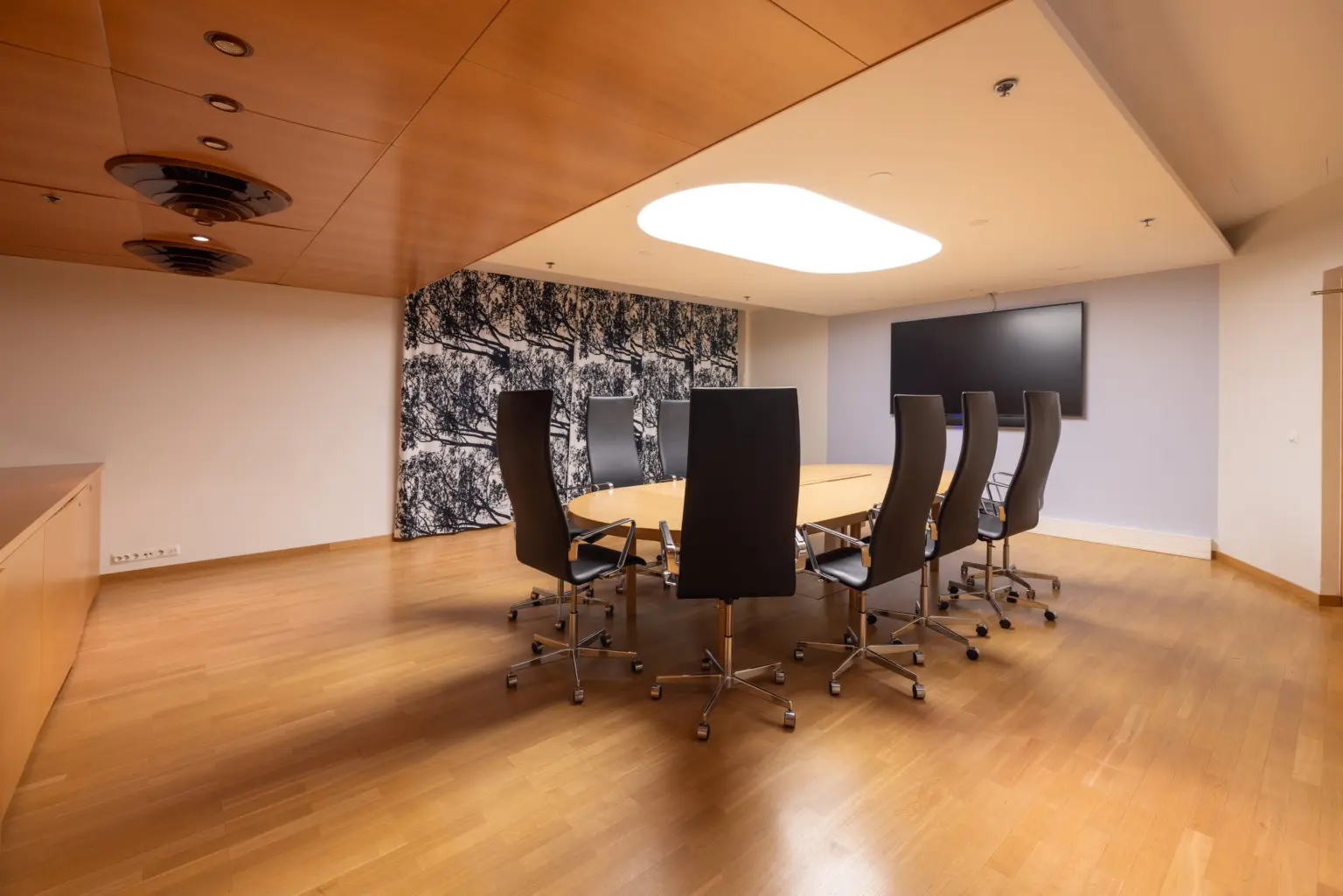 Stilren möteslokal för 12 personer, där mötesdeltagarna kan njuta av skandinavisk toppdesign, med Oxford-stolar designade av Arne Jacobsen. Lokalen har en speciell ljusnisch i taket, vars indirekta belysning skapar en unik atmosfär i rummet.