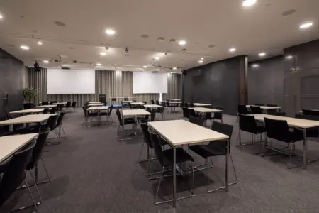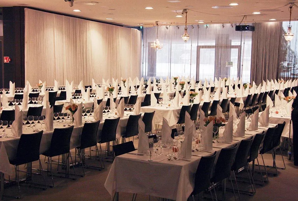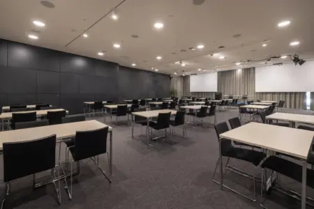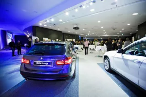 Utställningslokalen Veranda 4 erbjuder en funktionell scen för storskaliga evenemang, såsom billanseringar.