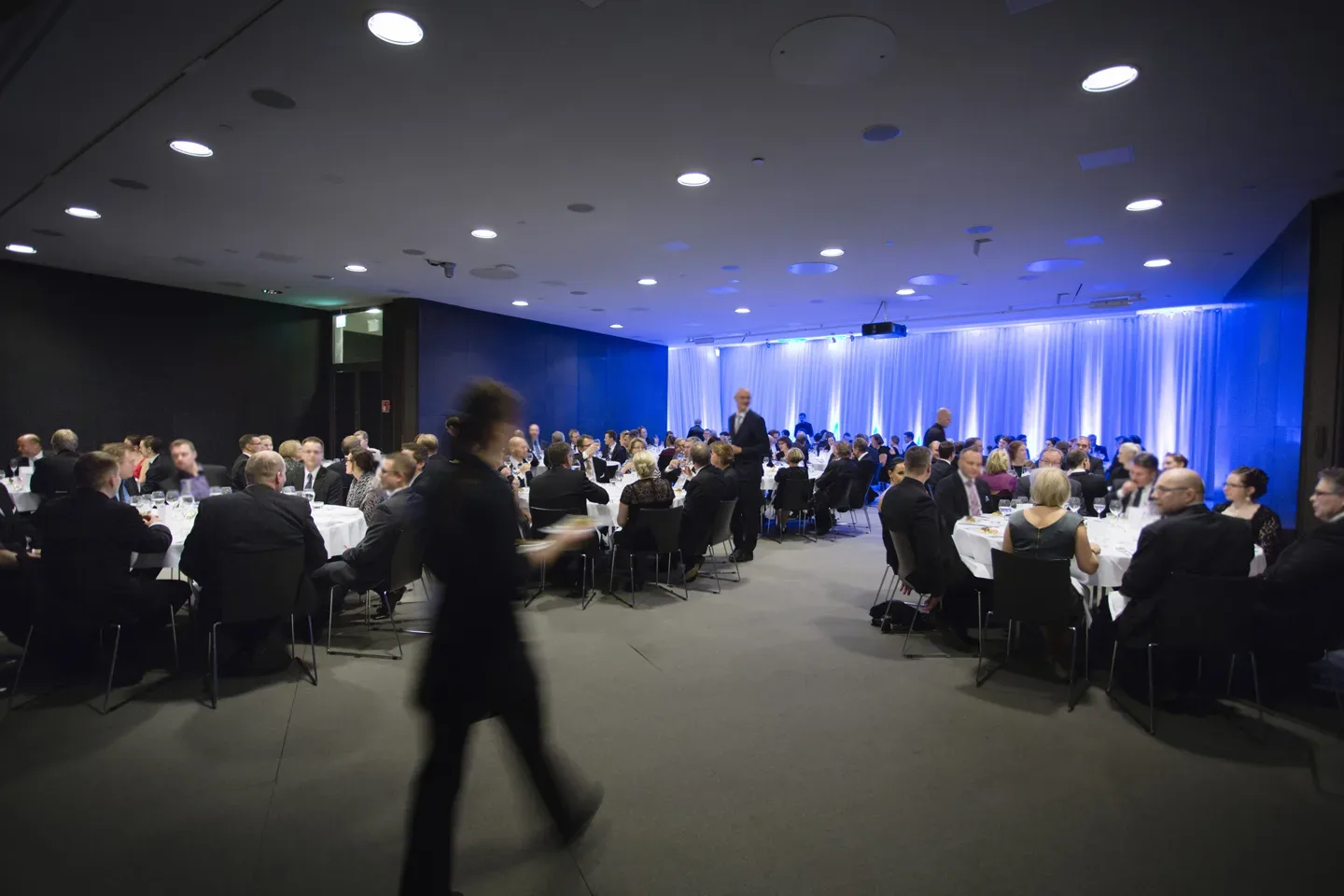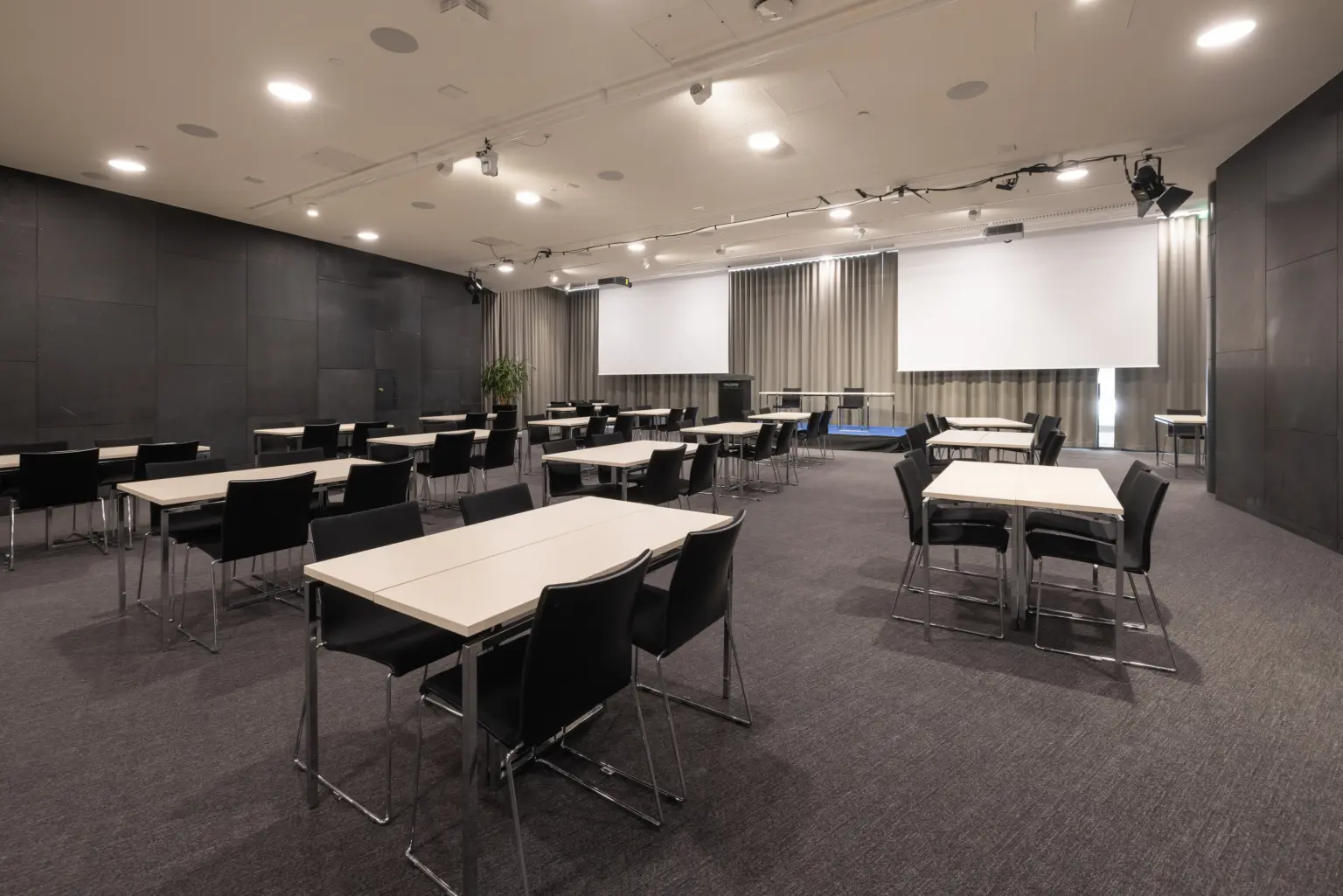 • Trådbundna mikrofoner på talarpodiet och i presidiet